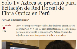Solo TV Azteca se presentó para licitación de Red Dorsal de Fibra Óptica en Perú