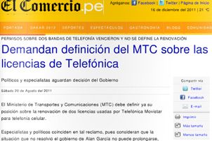 Demandan definición del MTC sobre las licencias de Telefónica [...] dnconsultores20/Ago/2011| Más información