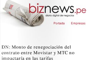DN: Monto de renegociación del contrato entre Movistar y MTC no impactaría en las tarifas [...] dnconsultores24/Oct/2011| Más información
