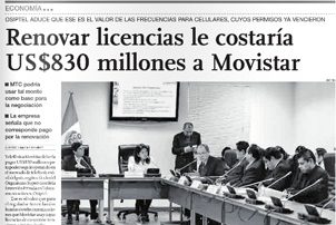 Renovar licencias le costaría US$830 millones a Movistar [...] dnconsultores24/Ago/2011| Más información