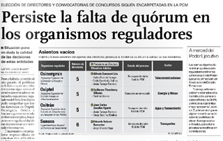 Persiste la falta de quórum en los organismos reguladores [...] dnconsultores26/Mar/2010| Más información