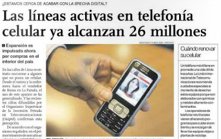 Las líneas activas en telefonía celular ya alcanzaban 26 millones [...] dnconsultores14/May/2010| Más información