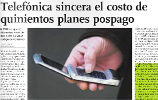 Telefónica sincera el costo de quinientos planes postpago [...] dnconsultores26/Ago/2010| Más información
