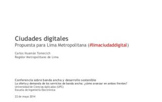 Ciudades Digitales Banda ancha para e desarrollo sostenible [...] dnconsultores22/May/2014| Más información